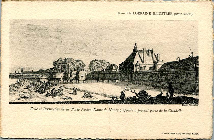 galerie / 02 - Vues de la Ville de Nancy / 10 - "Nancy au XVIIème siècle", "Vieux Nancy", "Nancy (ancien)" / 1 Série "La Lorraine illustrée (XVIIème siècle)" [cartes numérotées] / 08 - Porte Notre-Dame