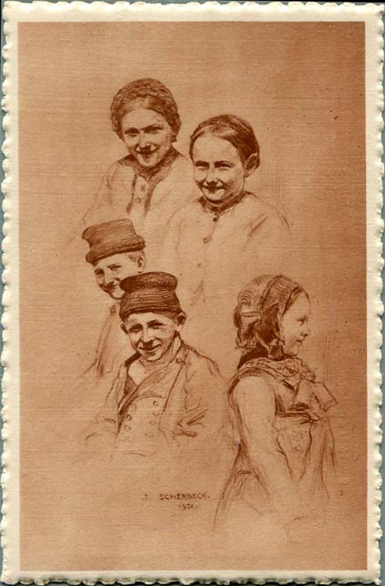 galerie / 16 - Œuvres d'artistes lorrains (dessinateurs, peintres, sculpteurs...) / SCHERBECK Jean (Photographe, dessinateur, peintre) / 13 - Têtes d'Alsace - série 1 (10 cartes numérotées) / 9