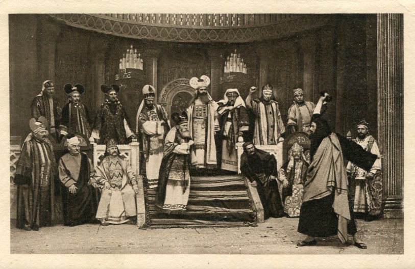 galerie / 17- Les Théâtres de la Passion / 2 - Le Théâtre de la Passion de Nancy / 2 - Les tableaux vivants des représentations de la "Passion" / 19?? - La Passion à Nancy (Clichés Boudrie) / 19?? - Clichés Boutrie (légende en bas du verso) / Judas devant le Sanhédrin