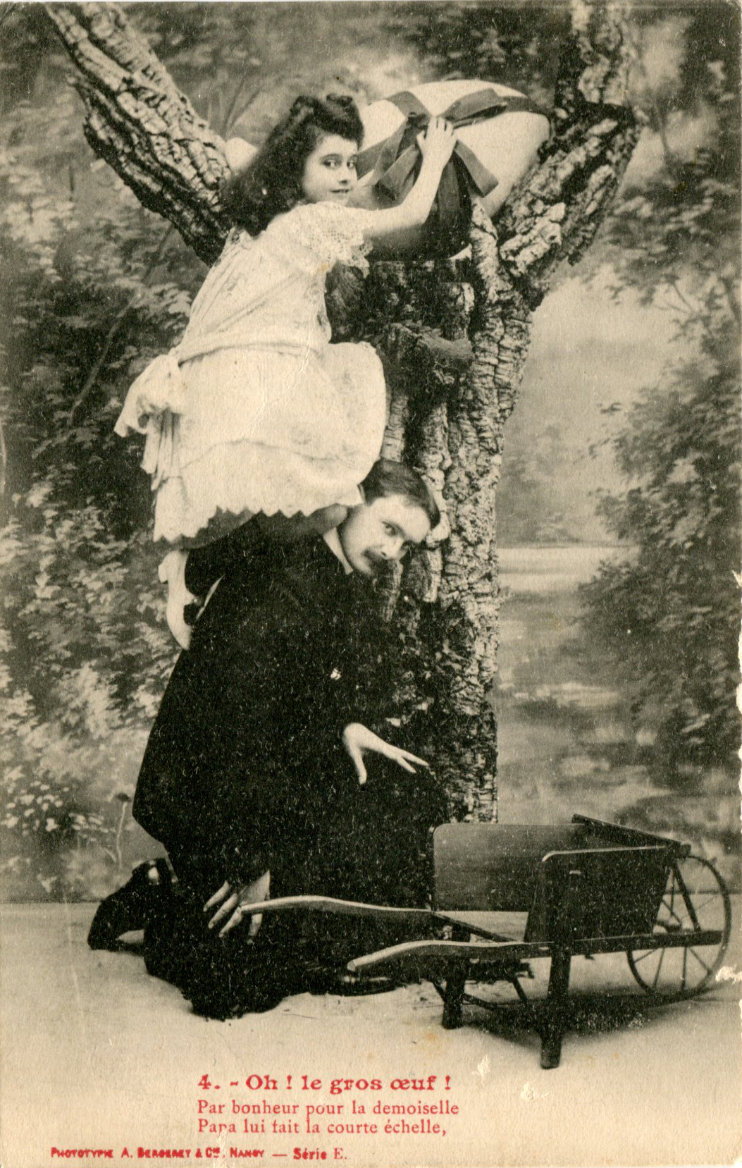 galerie / 22 - Cartes "fantaisies" éditées à Nancy (Bergeret, Humblot, Helminger, Royer...) / 06 - "Romans-photo" en cartes postales / Oh ! le gros œuf [6 cartes] / 4-GrosOeuf