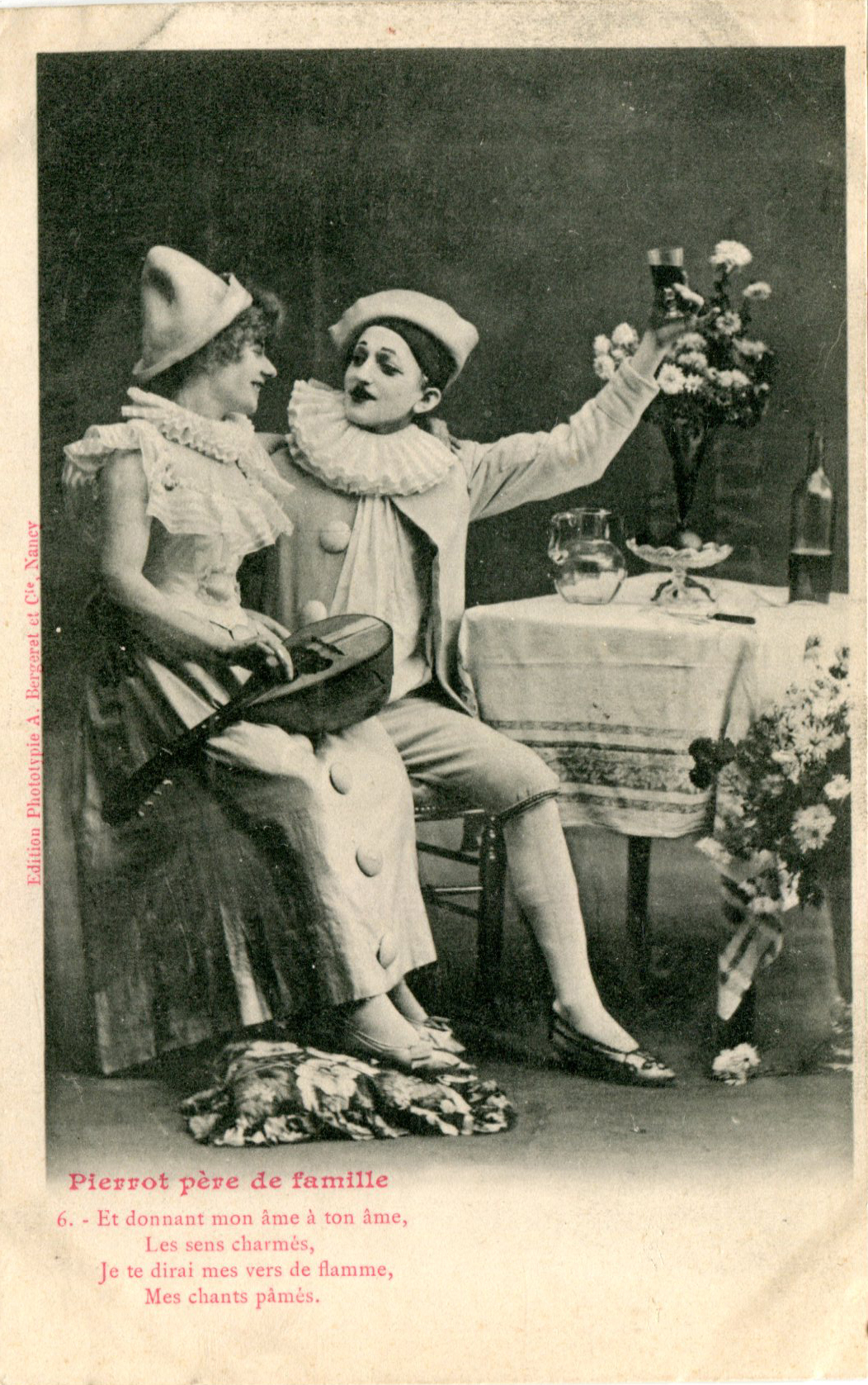 galerie / 22 - Cartes "fantaisies" éditées à Nancy (Bergeret, Humblot, Helminger, Royer...) / 06 - "Romans-photo" en cartes postales / Pierrot / Pierrot père de famille [10 cartes] / 06-PierrotPere