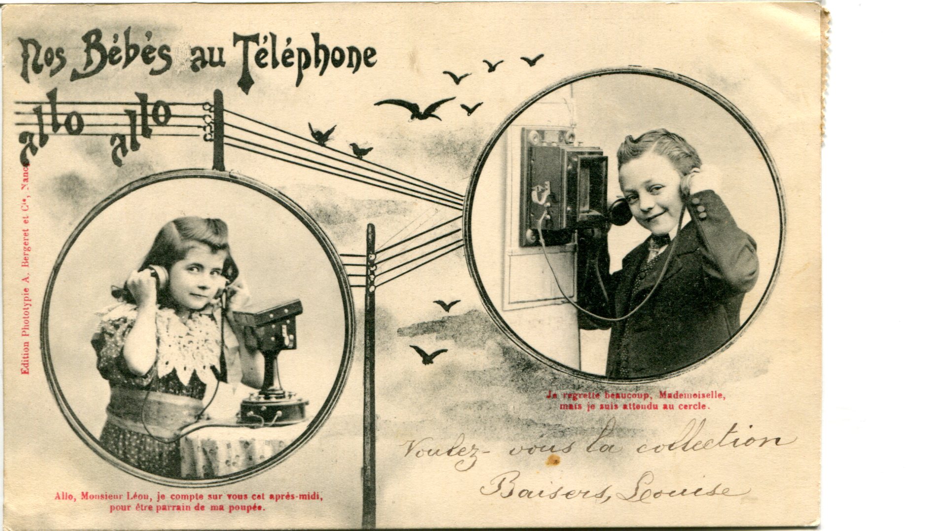 galerie / 22 - Cartes "fantaisies" éditées à Nancy (Bergeret, Humblot, Helminger, Royer...) / 03 - Séries thématiques / Nos bébés au téléphone / 05-BebeTelephone