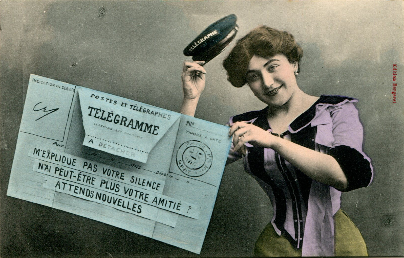 galerie / 22 - Cartes "fantaisies" éditées à Nancy (Bergeret, Humblot, Helminger, Royer...) / 01 - Cartes pour la promotion des cartes postales / 2 - Série "Télégrammes" (Imprimeries Réunies de Nancy) / Attends nouvelles