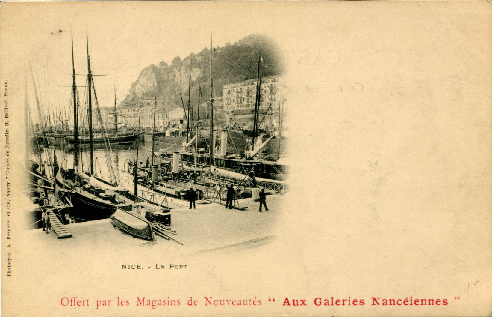 galerie / 06 - Marché, établissements commerciaux et industriels de la Ville de Nancy / 2 - Commerces et industries de la Ville de Nancy / 01 - Grands Magasins / 1 - Aux Galeries Nancéiennes (Cartes publicitaires) / Nice - Le port