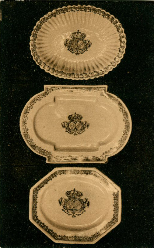 09bis - Plats d'un service ducal aux armes du duc Léopold de Lorraine et d'Elisabeth-Charlotte d'Orléans, son épouse (faïence de Moustiers)