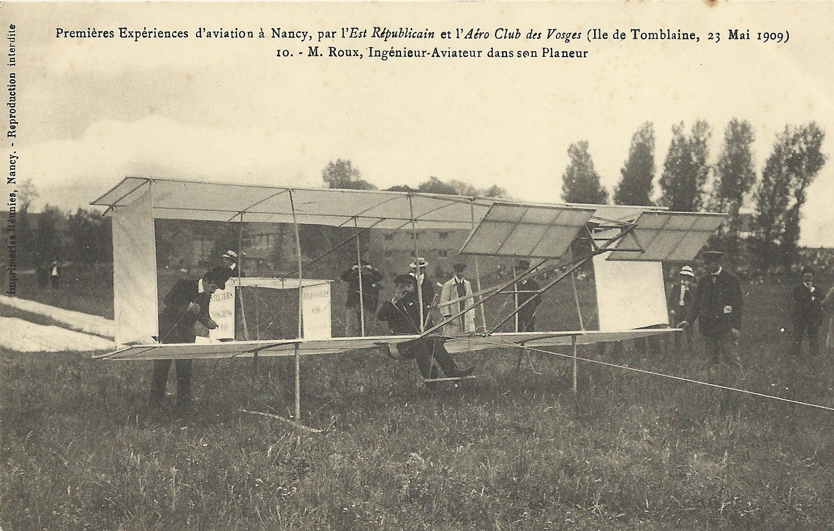 galerie / 10 - Aéronefs : ballons, dirigeables et avions / 1909 - Premières expériences d'aviation (23 mai) / 1 - Premières expériences d'aviation (cartes numérotées) / ■ 10 - M. Roux ingénieur-aviateur