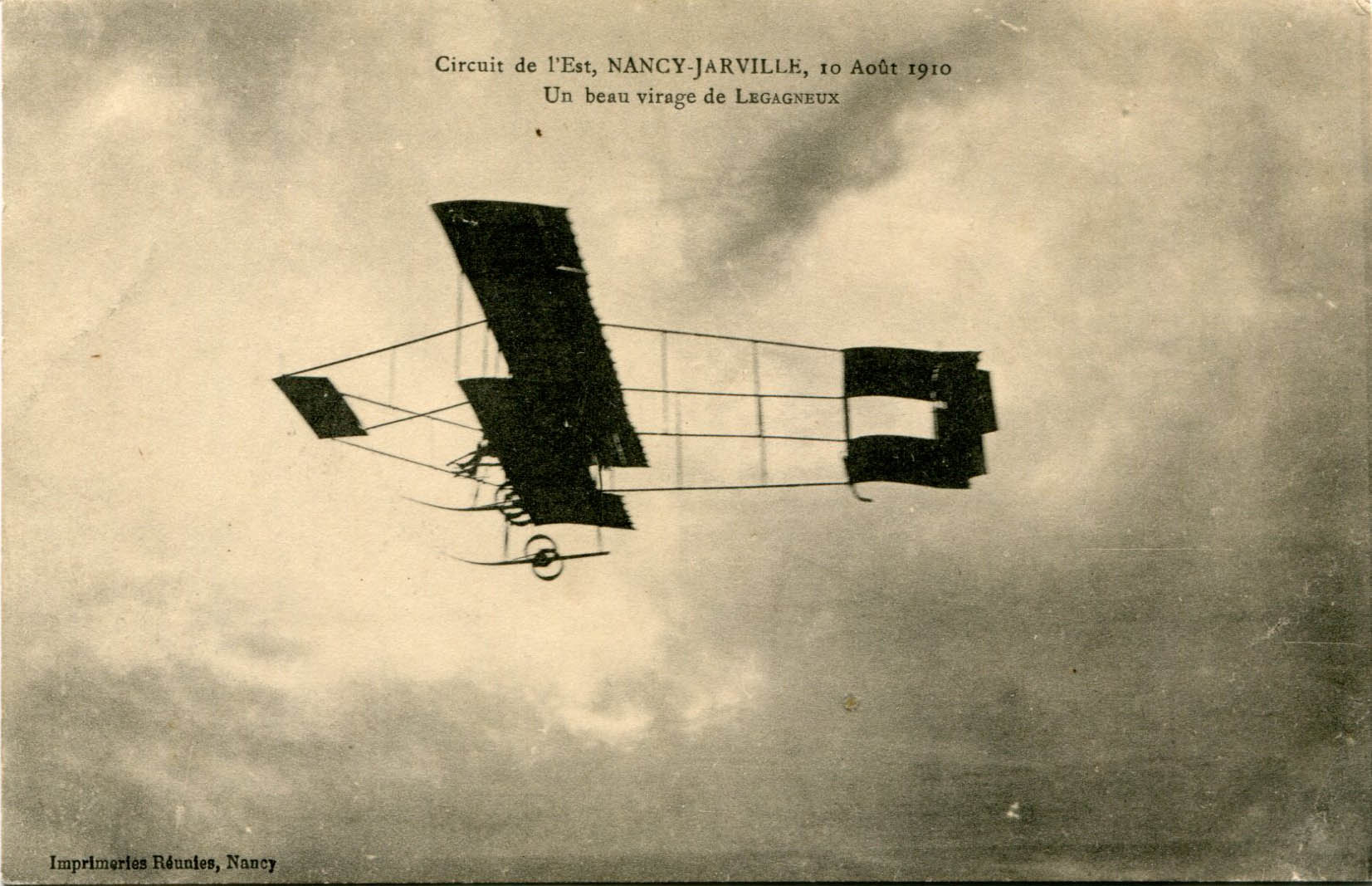 galerie / 10 - Aéronefs : ballons, dirigeables et avions / 1910 - Circuit de l'Est Nancy-Jarville (9, 10, 11 août ) / 5 - Journée du 10 août 1910 - Vol vers la frontière allemande / Legagneux