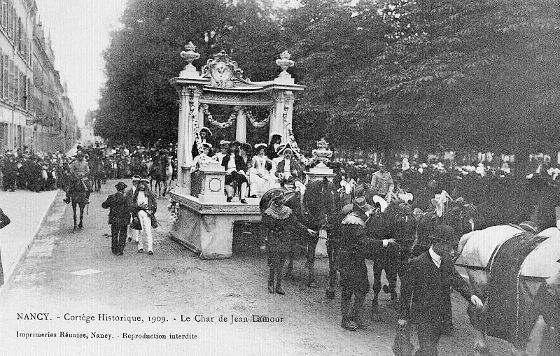 galerie / 08 - Fêtes et manifestations officielles et civiles, expositions... / 2 - Fêtes et manifestations publiques non sportives / 1909 - Cortège historique (juillet-août) / 3 - Cortège Historique (juillet-août) - 2ème série (20 cartes) "Imprimeries Réunies" / Char de Jean Lamour