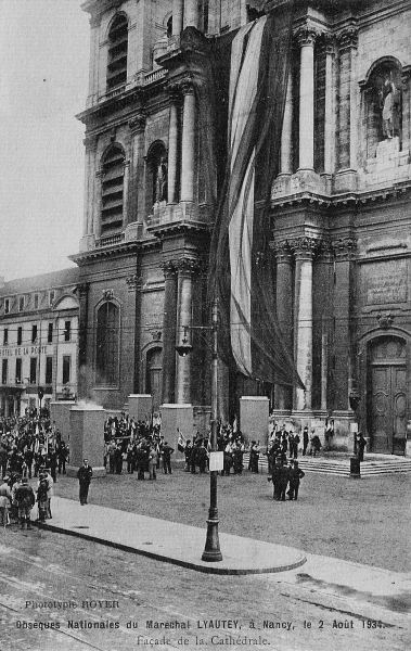 galerie / 08 - Fêtes et manifestations officielles et civiles, expositions... / 1 - Manifestations officielles / 1934 - Obsèques nationales du Maréchal Lyautey à Nancy (2 août) / 4 - Obsèques nationales du Maréchal Lyautey à Nancy (2 août 1934) / Devant la cathédrale