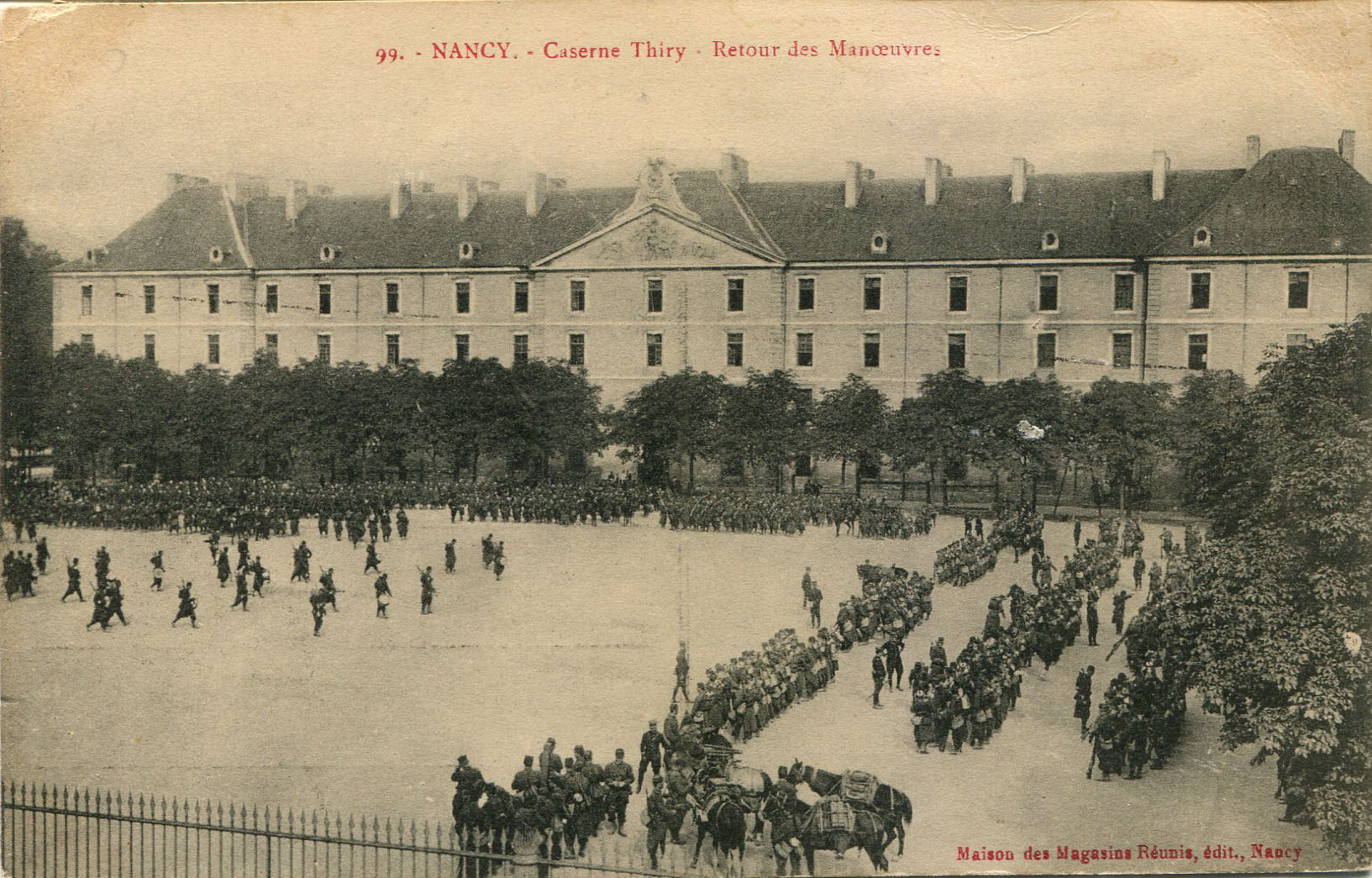 galerie / 11 - Armée / 1 - Casernes et organismes militaires / Caserne Thiry (ancienne caserne Ste-Catherine) [20e Corps d'armée - 26e RI et 69e RI] / 2 - À le caserne : entrées, sorties et parades / 135 - Caserne Thiry