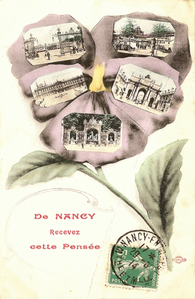 galerie / 14 - Cartes fantaisies sur Nancy, avec messages / 07 - Une pensée de Nancy / 12 Nancy Fleurs