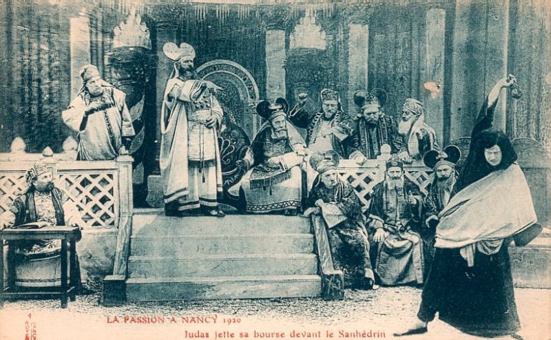 galerie / 17- Les Théâtres de la Passion / 2 - Le Théâtre de la Passion de Nancy / 2 - Les tableaux vivants des représentations de la "Passion" / 1920 - La Passion à Nancy / 1920 - La Passion à Nancy (20 cartes, imprimerie "Royer") / 1920 - Judas jette sa bourse