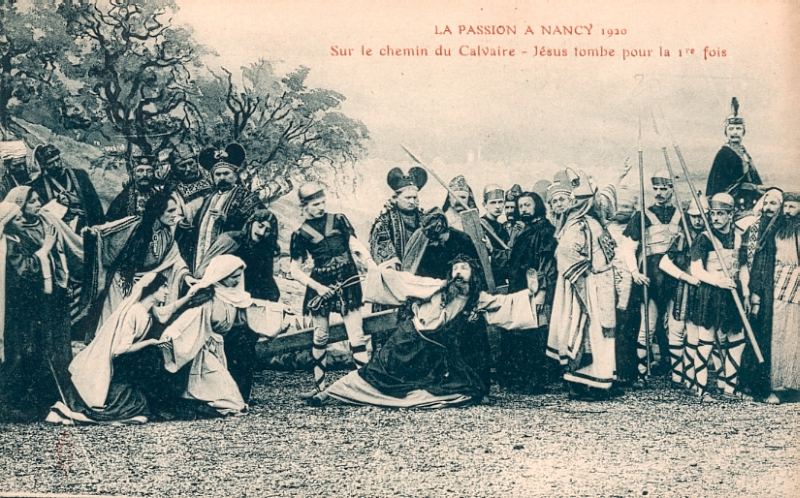 galerie / 17- Les Théâtres de la Passion / 2 - Le Théâtre de la Passion de Nancy / 2 - Les tableaux vivants des représentations de la "Passion" / 1920 - La Passion à Nancy / 1920 - La Passion à Nancy (20 cartes, imprimerie "Royer") / 1920 - 1ère chute