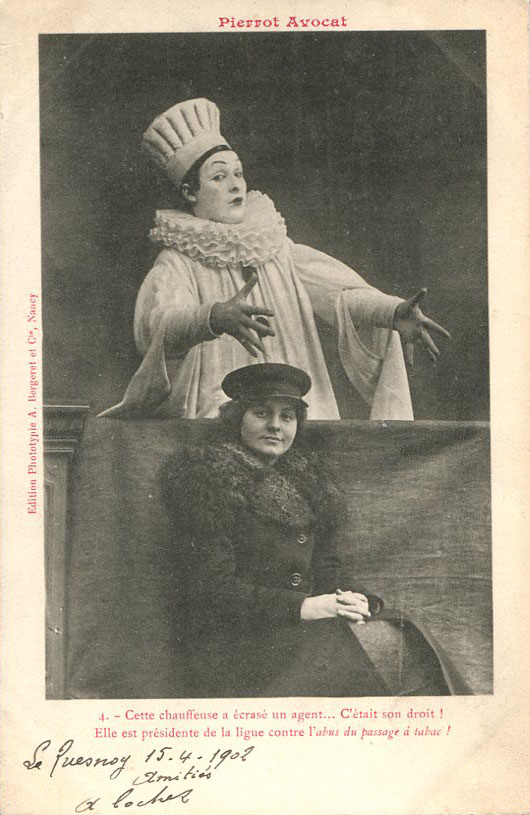 galerie / 22 - Cartes "fantaisies" éditées à Nancy (Bergeret, Humblot, Helminger, Royer...) / 06 - "Romans-photo" en cartes postales / Pierrot / Pierrot avocat / 04-PierrotAvocat