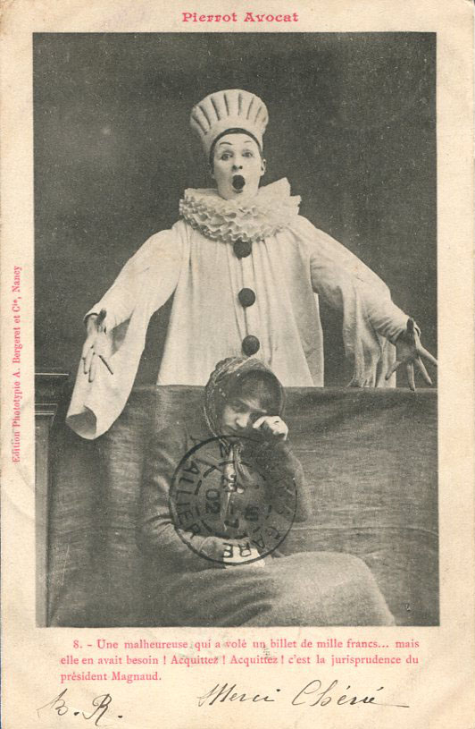 galerie / 22 - Cartes "fantaisies" éditées à Nancy (Bergeret, Humblot, Helminger, Royer...) / 06 - "Romans-photo" en cartes postales / Pierrot / Pierrot avocat / 08-PierrotAvocat