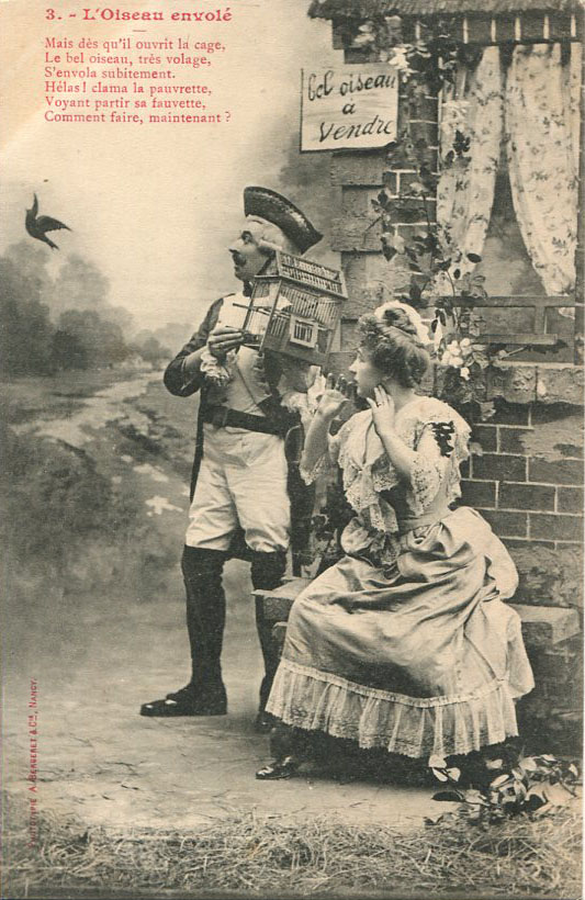 galerie / 22 - Cartes "fantaisies" éditées à Nancy (Bergeret, Humblot, Helminger, Royer...) / 06 - "Romans-photo" en cartes postales / L'oiseau envolé [5 cartes] / 3