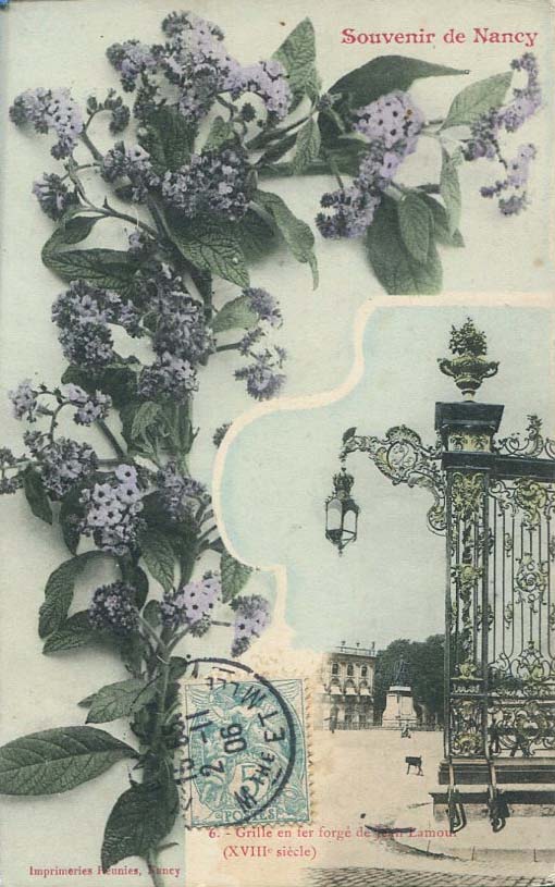 galerie / 14 - Cartes fantaisies sur Nancy, avec messages / 03 - Souvenir de Nancy / 1 - Souvenir de Nancy (série numérotée) / 6 - Grille de Jean Lamour