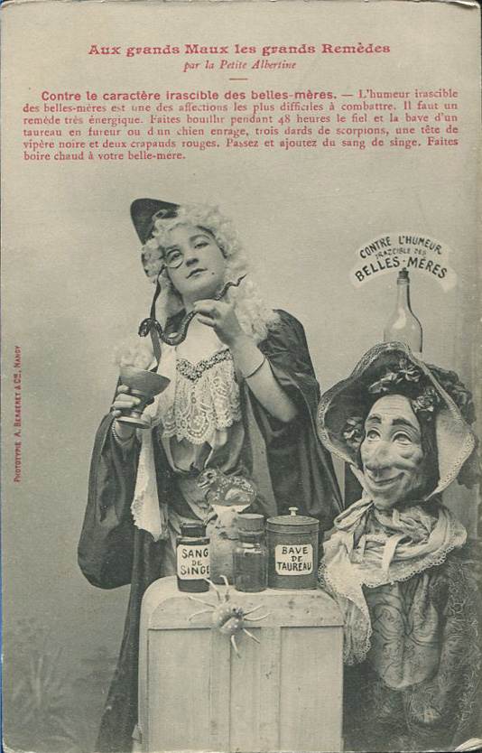 galerie / 22 - Cartes "fantaisies" éditées à Nancy (Bergeret, Humblot, Helminger, Royer...) / 03 - Séries thématiques / Aux grands maux les grands remèdes / Irascibilité des belles-mères