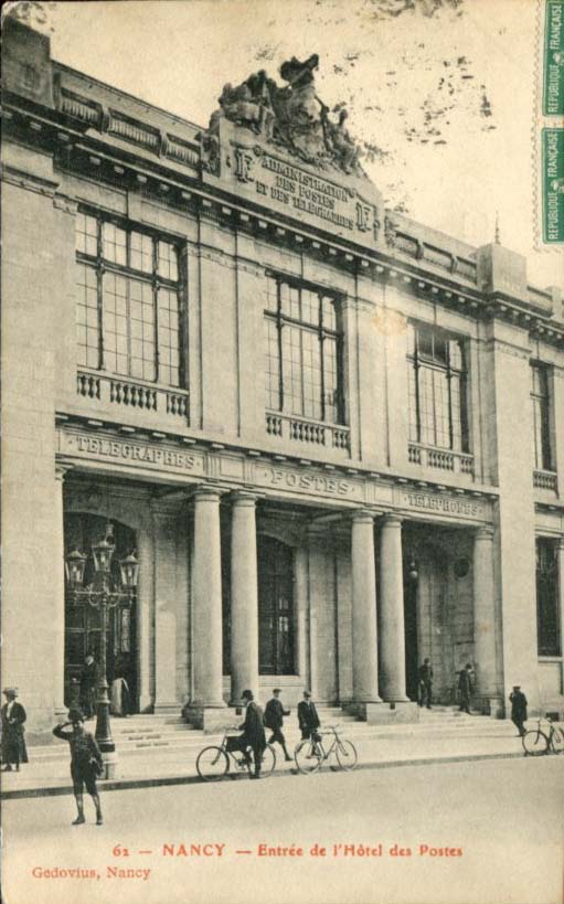 galerie / 03 - Organismes publics et parapublics de Nancy (sauf «Santé» et «Enseignement») / 04 - PTT (Poste, Télégraphe, Téléphone) / 1 - Hôtel des Postes / Entrée