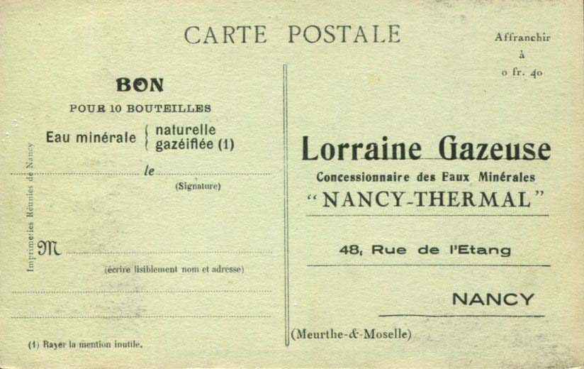 galerie / 04 - Santé (Hôpitaux civils et militaires - Hospices - Cliniques - Maisons de retraite...) de la Métropole du Grand Nancy / 4 - Cliniques, maisons de santé, Cure d'air, Nancy Thermal... / 2 - Nancy Thermal / 1 - Le site / Publicité "Lorraine gazeuse" -v
