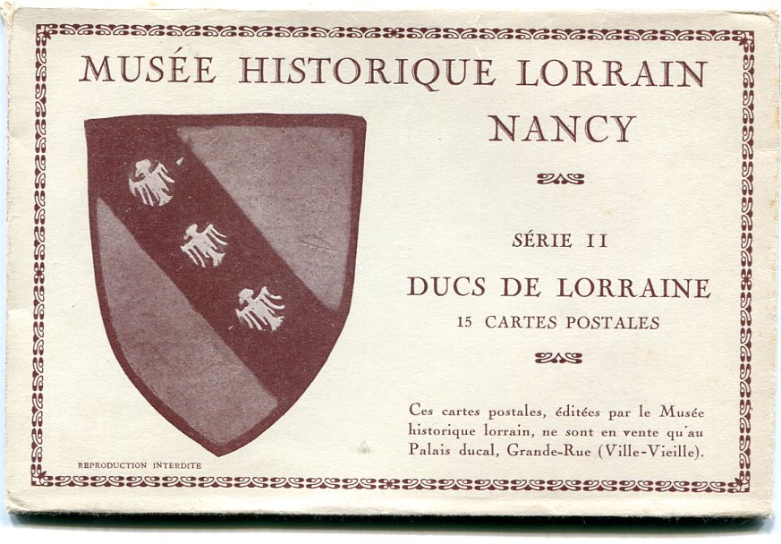 galerie / 03 - Organismes publics et parapublics de Nancy (sauf «Santé» et «Enseignement») / 22 - Palais ducal - Musée Lorrain - Église des Cordeliers / 4 - Cartes éditées par le Musée historique lorrain / 08 - Série II - Ducs de Lorraine (15 cartes numérotées) / Pochette de la série