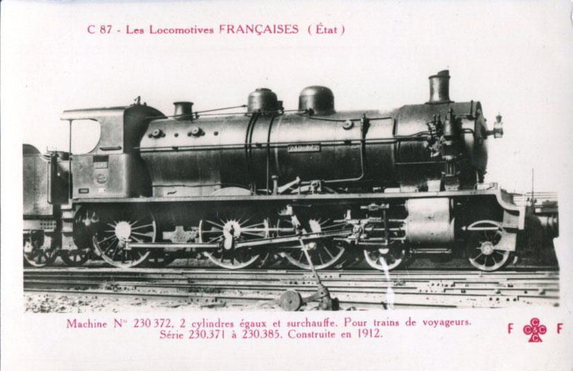 galerie / 01 - Naviguer sur la terre : chemins de fer, automobiles... / 1 - Chemins de fer, tramways, funiculaires... / 01 - Locomotives et automotrices françaises (CPA) / 1- Séries "Les locomotives françaises" (Éd. Fleury) / 1 - Série "Les locomotives françaises" (cartes numérotées) / C 87 - [1912] (r)