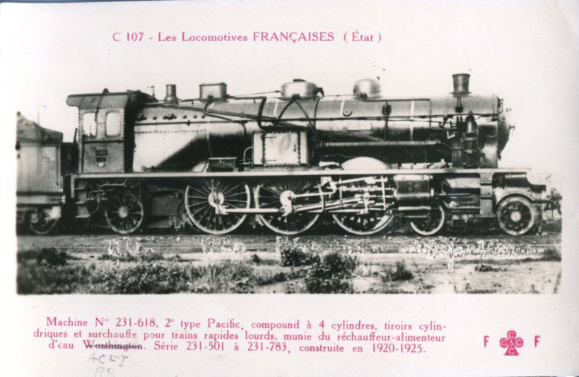 galerie / 01 - Naviguer sur la terre : chemins de fer, automobiles... / 1 - Chemins de fer, tramways, funiculaires... / 01 - Locomotives et automotrices françaises (CPA) / 1- Séries "Les locomotives françaises" (Éd. Fleury) / 1 - Série "Les locomotives françaises" (cartes numérotées) / C 107 - |1920-1925] - "Pacific" (r)