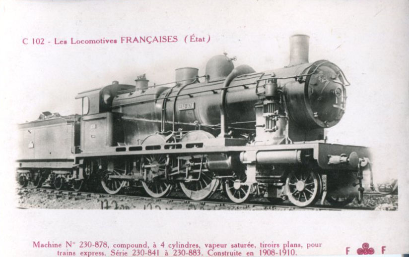 galerie / 01 - Naviguer sur la terre : chemins de fer, automobiles... / 1 - Chemins de fer, tramways, funiculaires... / 01 - Locomotives et automotrices françaises (CPA) / 1- Séries "Les locomotives françaises" (Éd. Fleury) / 1 - Série "Les locomotives françaises" (cartes numérotées) / C 102 - [1908-1910] (r)