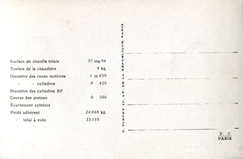 galerie / 01 - Naviguer sur la terre : chemins de fer, automobiles... / 1 - Chemins de fer, tramways, funiculaires... / 01 - Locomotives et automotrices françaises (CPA) / 1- Séries "Les locomotives françaises" (Éd. Fleury) / 1 - Série "Les locomotives françaises" (cartes numérotées) / C 154 (v)