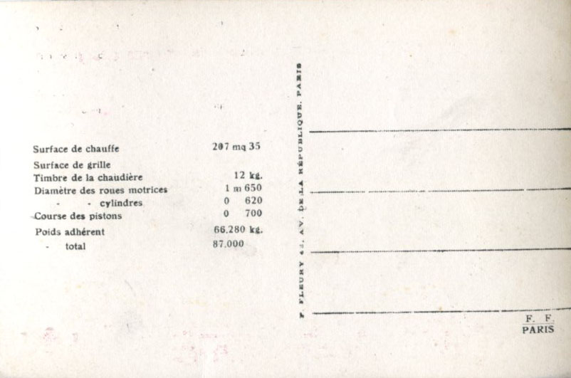 galerie / 01 - Naviguer sur la terre : chemins de fer, automobiles... / 1 - Chemins de fer, tramways, funiculaires... / 01 - Locomotives et automotrices françaises (CPA) / 1- Séries "Les locomotives françaises" (Éd. Fleury) / 1 - Série "Les locomotives françaises" (cartes numérotées) / C 147 - "Mikado" (v)