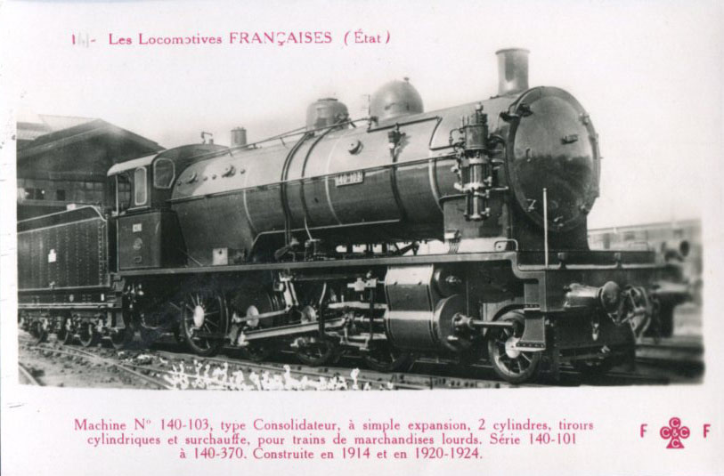 galerie / 01 - Naviguer sur la terre : chemins de fer, automobiles... / 1 - Chemins de fer, tramways, funiculaires... / 01 - Locomotives et automotrices françaises (CPA) / 1- Séries "Les locomotives françaises" (Éd. Fleury) / 1 - Série "Les locomotives françaises" (cartes numérotées) / C 141 - [1914 et 1920-1924] - "Consolidateur" (r)