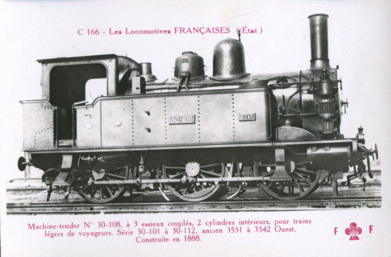galerie / 01 - Naviguer sur la terre : chemins de fer, automobiles... / 1 - Chemins de fer, tramways, funiculaires... / 01 - Locomotives et automotrices françaises (CPA) / 1- Séries "Les locomotives françaises" (Éd. Fleury) / 1 - Série "Les locomotives françaises" (cartes numérotées) / C 166 - [1888] (r)
