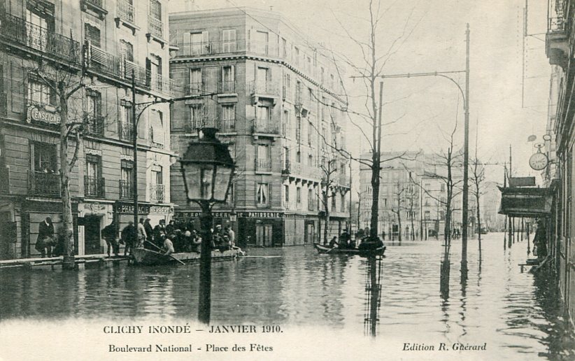 galerie / Inondations de janvier 1910 en France / 92 - Hauts-de-Seine / Clichy / Bd National, Place des Fêtes