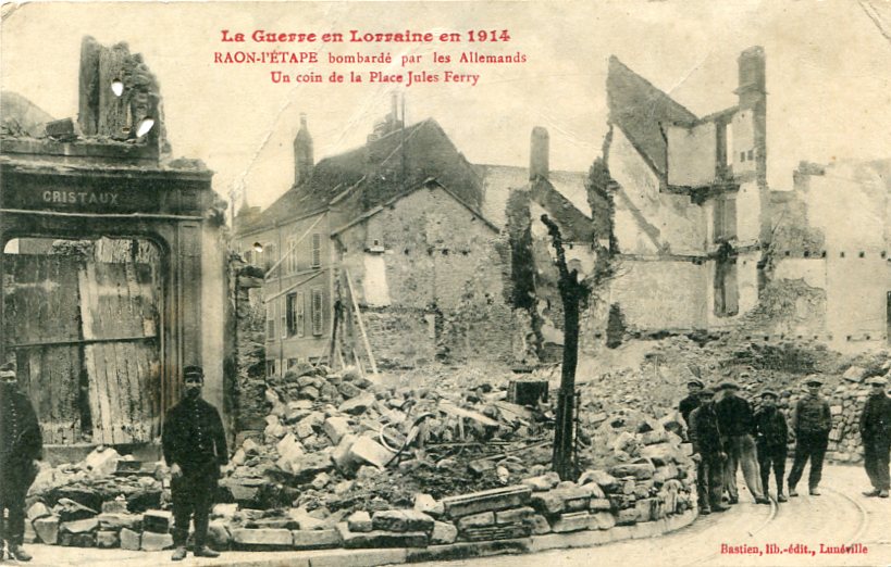 galerie / 02 - De Raon-l'Étape au Col du Bonhomme par Saint-Dié / 01 - Raon-l'Étape et la Vallée de Celles / 4 - La guerre de 1914 à Raon-l'Étape / Raon-l'Étape bombardé / Place Jules Ferry